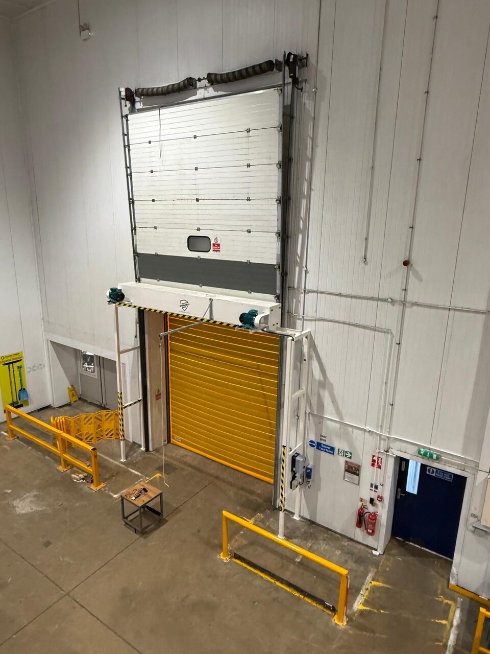 The existing externally mounted roller shutter security door was replaced with a high-speed, thermally insulated door, which now serves as the primary operational access point. The original internal sectional door has been retained and repurposed as the facility’s main security door, ensuring site security is maintained without compromising daily throughput.